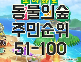 모여봐요 동물의 숲 주민순위 51~100위까지 알아보기 안녕하세요. 라진남입니다. 이번 포스팅은 모여봐요 동물의 숲 주민 순위 51위부터 100위까지의 순위에 대한 내용으로 찾아왔습니다. 동물의 숲 주민 순위는 인기 순위라고 보시면 될 것 같아요. 순위 변동은 계속 있기 때문에 411마리의 주민 중 51-100위 사이의 상위권에 위치한 주민들에 대한 자세한 정보들을 가져왔습니다. 순위, 이름, 성별, 성격, 생일, 별자리, 특기, 좋아하는 색, 가족, 좋아하는 말, 장래 희망 등 주민들에 대한 세세한 정보까지 모두 적어보았습니다! 주민을 데려올 때 저는 생김새도 중요하지만 말투도 많이 보고 데려오고는 합니다. 그래서 말버릇을 필수?로 보게 되더군요. 많은 주민들 중에서 최대한 보기 편하도록 표로 간단하게..